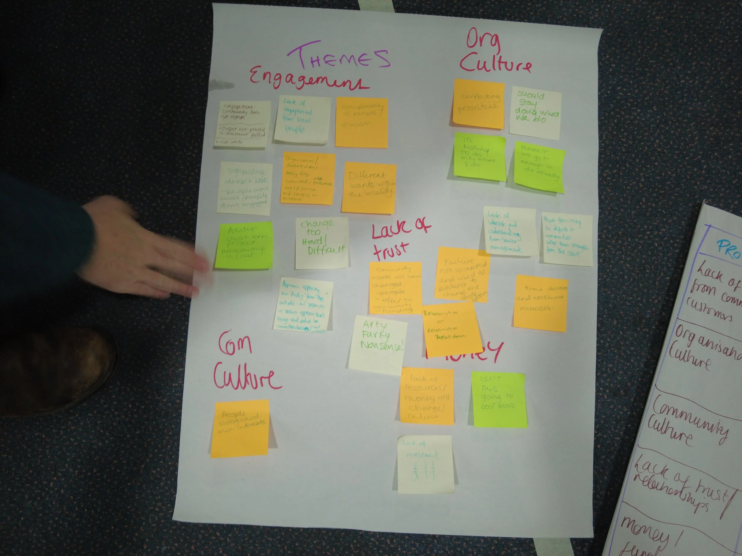 I was in the group for organisational culture. We identified that the main solution was exactly what we'd identified in the “critical friends” discussion. That it was about leaders walking along-side the project and aiding in the change of language/core values that would make the most difference.